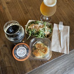 Tons of places to sit inside and outside! I'm not even a beer person but my husband is and they have super delicious beers that even people like me go "WOW THATS DELICIOUS" and they're packed with pretty good percentages so you get a nice buzz! I highly recommend for a date or for lunch! The food was pretty good too! We had the chicken quesadilla and it comes with house chips and we loved it! I highly recommend this place. Staff had great customer service skills and service as well. They are super speedy and efficient and keep a good fun vibe. They also are super knowledgeable of their products.